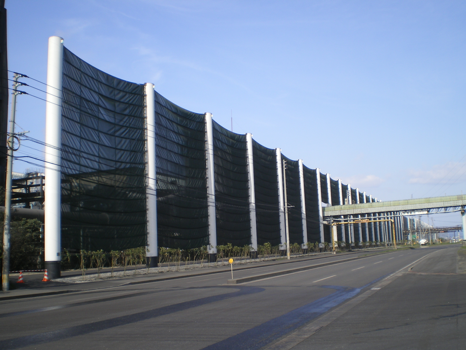 福岡県内原料生産工場防塵ネット 2007.3竣工 地上高16m DHT